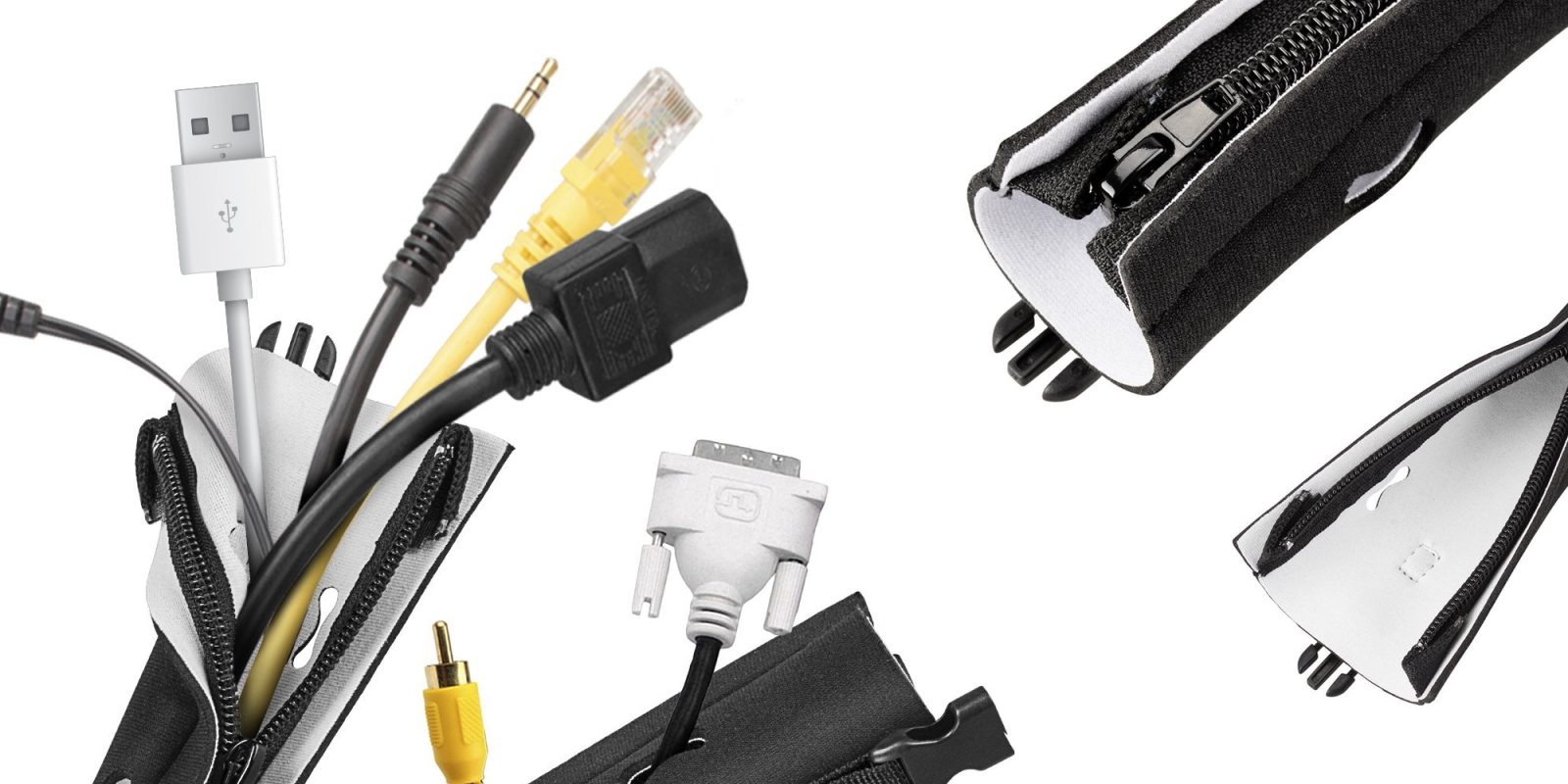 - This cable management solution is made of thick high density neoprene, zip-up design make you easier to manage the cluttered cable tube.