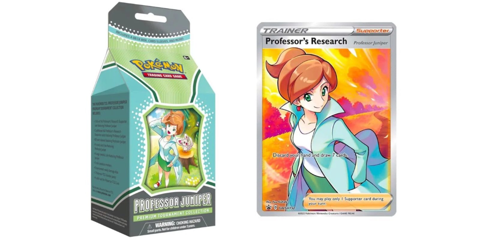 Research Your Next Strategy—with Professor Juniper! Professor Juniper guides new Pokémon Trainers as they begin their journey, and in the Pokémon TCG, her in-depth research can help you find the cards you need to succeed! In this premium collection, you get a full playset of the Professor’s Research Supporter card featuring Professor Juniper, plus a protective deck box, card sleeves, coin, and more tournament-ready accessories. You’ll also find a stack of Pokémon TCG booster packs and a code that unlocks another full playset of Professor’s Research in Pokémon TCG Live!