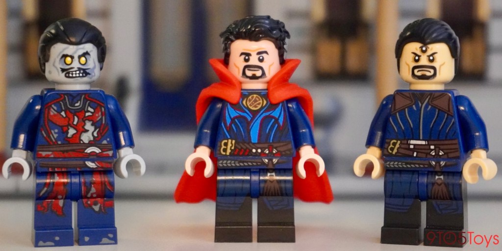 Starting things off, we have three different Doctor Strange minifigs. It’s only fitting that we take a look at the former Sorcerer Supreme first given that the Sanctum Sanctorum is his lair, and to honor that fact the LEGO Group has delivered three incarnations of him. You’re getting both Zombie Strange and Sinister Strange from Multiverse of Madness, as well as the original 616 version of Strange.