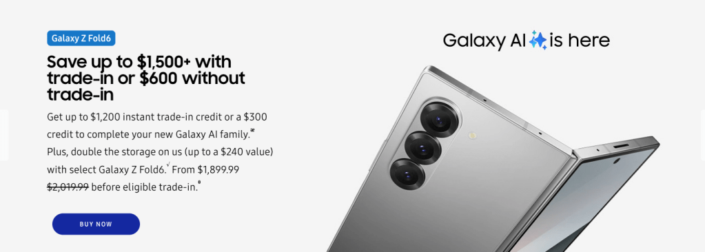 Samsung offering up to $1,320 off Galaxy Flip/Fold 6 with trades and FREE storage