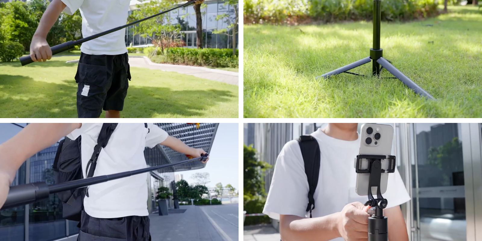 - This is almost the lightest selfie stick tripod on the market, only 295g, whether it is placed in a backpack or handbag will not bring the burden of the integrated design brings the ultimate in portability without assembly, anytime, anywhere you can improvise photo. More suitable for a variety of scenarios, Whether it’s outdoor travel/indoor videography/family photos/sports recording , or content creation at RedNote/YouTube, this tripod is more than just a tripod.
